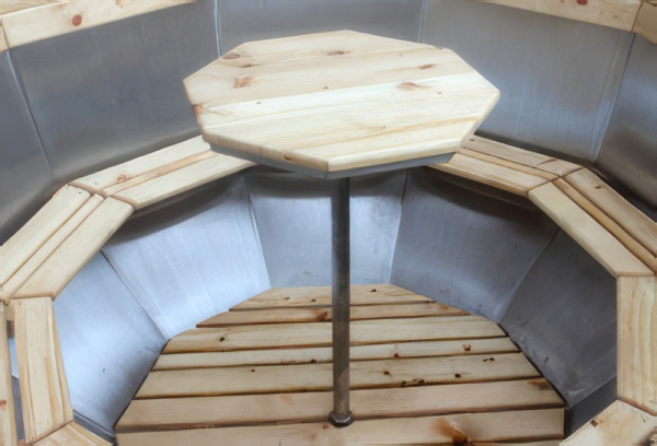 Банный чан из нержавеющей стали Ø-2000 на подставке с ветрозащитой и печью СТ3
