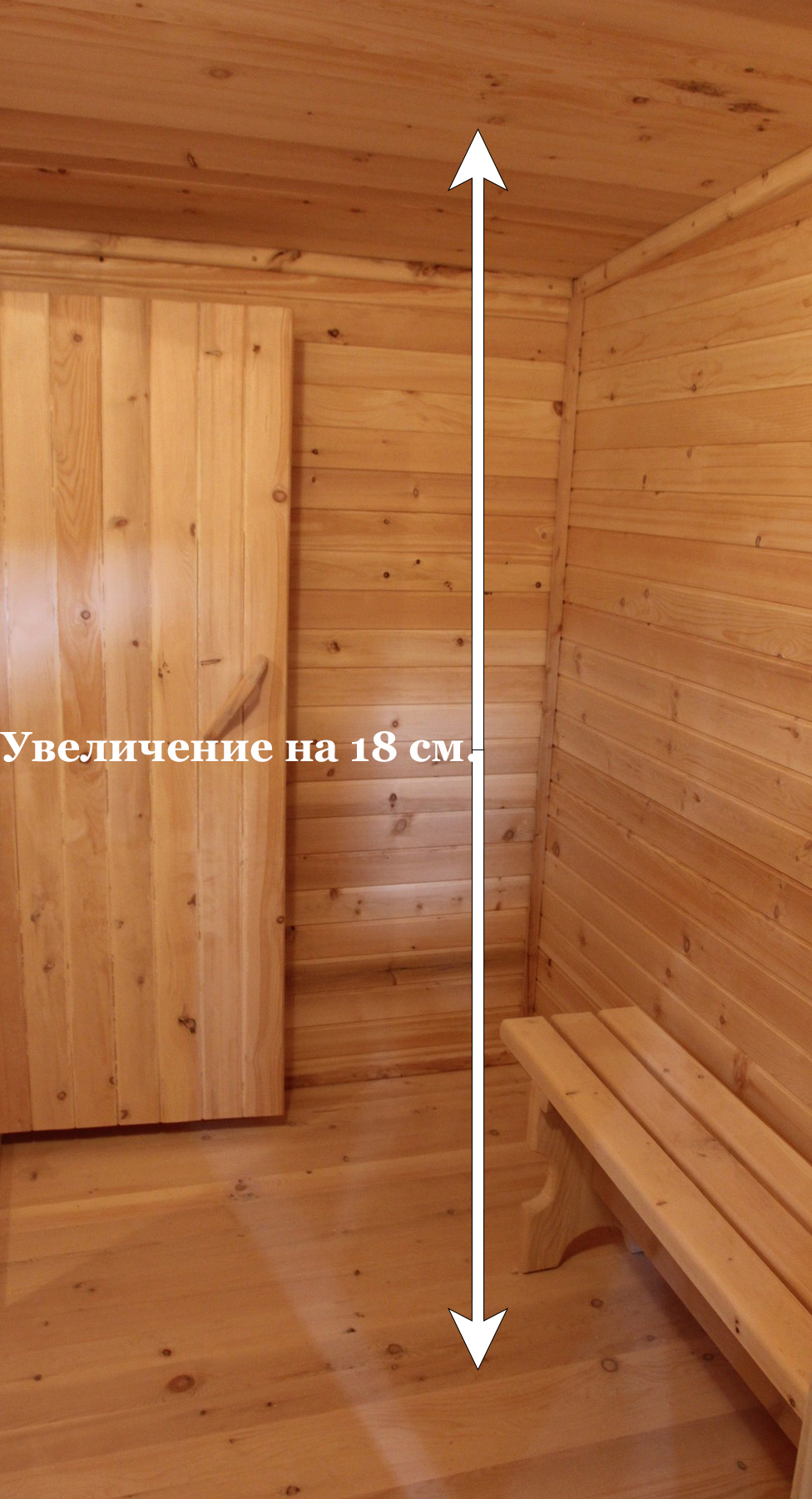 Увеличение высоты потолка необходимо, когда рост парящихся людей выше 180 см.