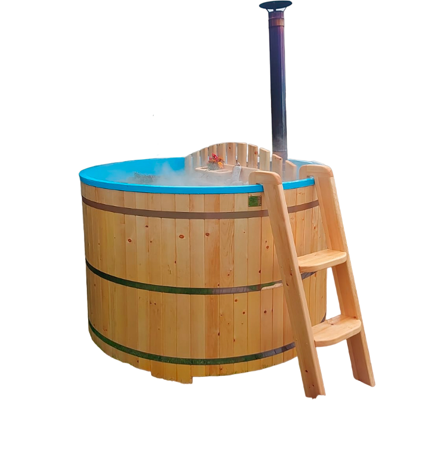 Финская круглая композитная купель с подогревом (с печкой) «Премиум 160 хот с печью 25 квт» Это уличная подогреваемая купель с круглой внутренней чашей, которая изготовлена из современного прочного и термоустойчивого материала (композита). Форма чаши обеспечивает комфортную посадку во время принятия процедур. Для удобства пользования купель оборудована приставной лестницей. Подогрев воды осуществляется внешней печью с дымоходом. Композитная вставка придает купели красивый внешний вид, продлевает срок службы и облегчает уход за изделием. Парение на свежем воздухе – это отличный способ укрепить здоровье и поддержать организм в тонусе.