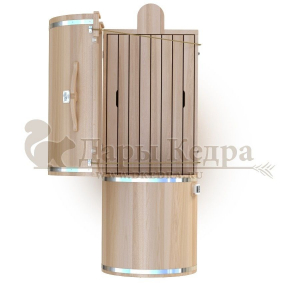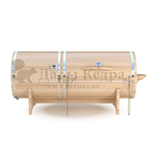 Горизонтальная двухрежимная фитобочка из кедра может быть использована как инфракрасная сауна и парная. Карбоновые излучатели отвечают за сухое парение и находятся на внутренней стороне дверцы. Влажное парение происходит за счет поступления горячего пара в фитобочку через паропровод. Горизонтальная форма позволяет принимать процедуры лежа. Внутренняя ручка из кедра облегчает открывание и закрывание двери во время парения. Такая модель наиболее удобна для оздоровительных центров.